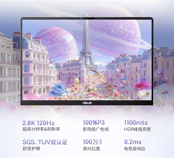 屏幕为14英寸2.8K 120Hz OLED屏,