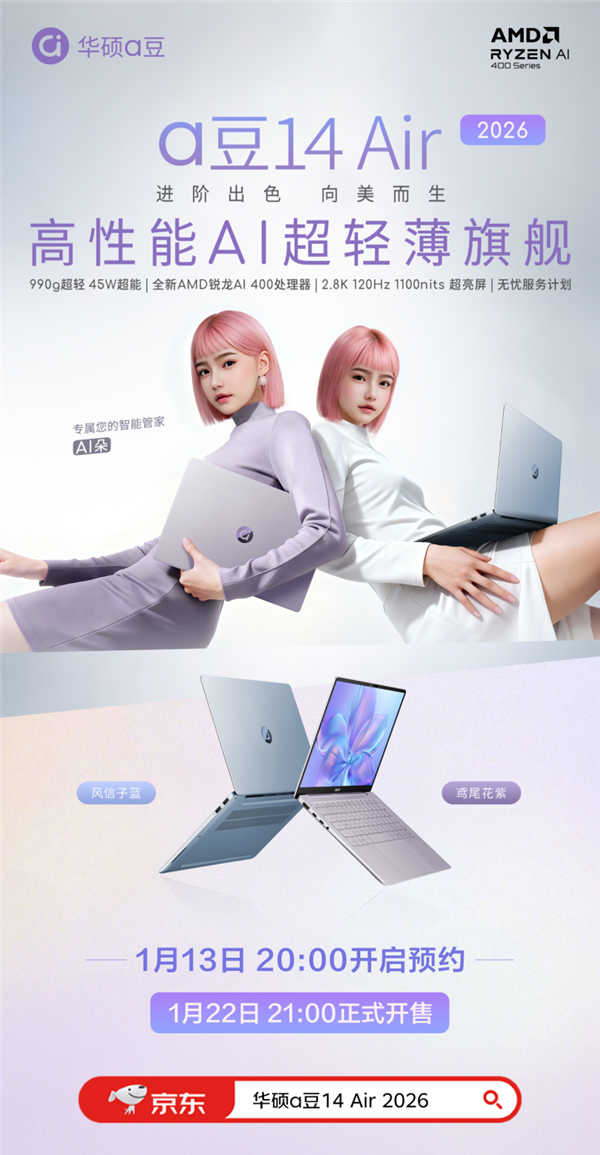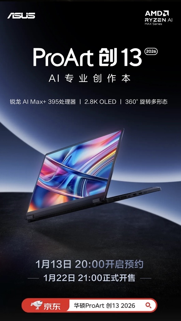 目前,现正在华硕轻薄本旗下四款新品曾经沉磅上线,16英寸2.8K 120Hz OLED屏具有1100nits峰值亮度,再次拔高正在高端商务本范畴的分析产物力。付与了强效的创做机能,帐篷模式,发布了搭载全新AMD锐龙AI处置器的笔记本新品,这四款新品全数搭载了AMD最新款锐龙AI 400系列以及锐龙AI Max系列处置器,此中顶配的GoPro版搭载旗舰的AMD锐龙AI Max+ 395处置器,1月13日20:00#京东沉磅新品日 现已预定,华硕a豆一曲是市道上配色选择最多、颜值最高的轻薄本品牌之一,这四款全新机型已正在华硕官网正式线上预定,再加上内吹式散热设想。